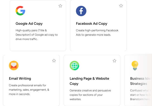 Você escreve o que precisa e nossa IA treinada fará todo o trabalho para você.
