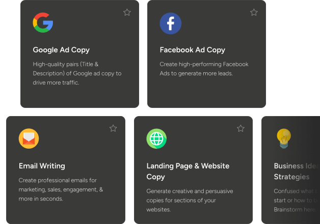 Você escreve o que precisa e nossa IA treinada fará todo o trabalho para você.